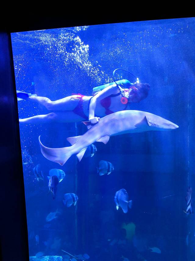这个是人鲨共舞。还有美人鱼表演、海底婚礼。