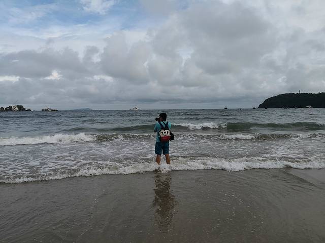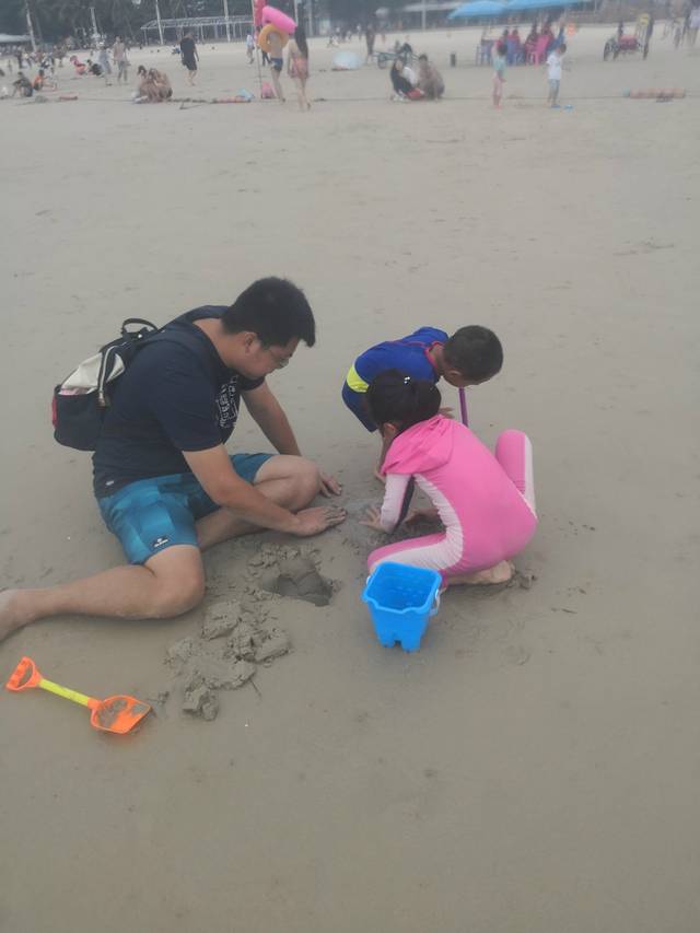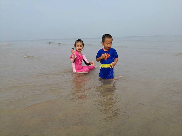 不愧是天下第一滩,沙子真细,像面粉一样。但是海上没有涠洲岛干净。孩子们对还不感冒了,就挖螃蟹了。