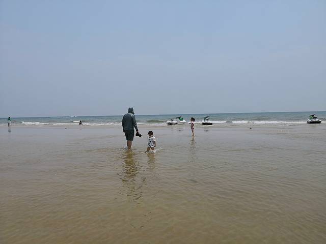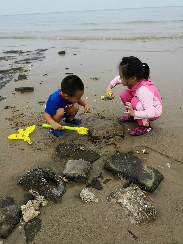 出门就是海边,五彩滩与沙滩的交界,都是浅滩,适合孩子玩。
