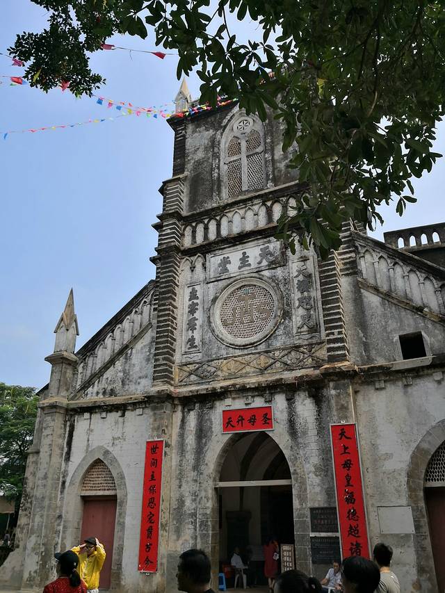 就是一个教堂,后花园很漂亮,有几颗百年以上的大树。旁边的小店可以看看裙子,我和女儿一人买了一条。这还有涠洲岛的伴手礼——客家工坊,有6个味道的蛋黄酥,推荐板栗、肉松、抹茶的,个人觉得红豆的有点甜;还有果干、烤鱼、海鸭蛋等特产。包邮寄,大概3-4天寄到,一定算好时间。