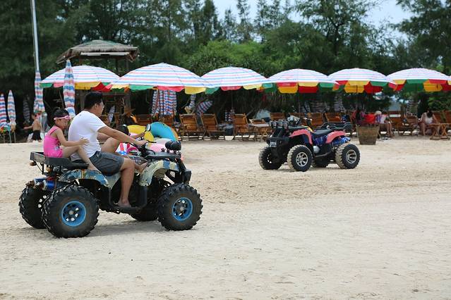 我们在岛上的交通工具,就是在店家租的,刚3个月的小摩托。孩子是特别喜欢,成了我们专属。一天租金60元。湿地公园就在道边看看就好了,里面没什么,还要注意别让叶子划伤自己。