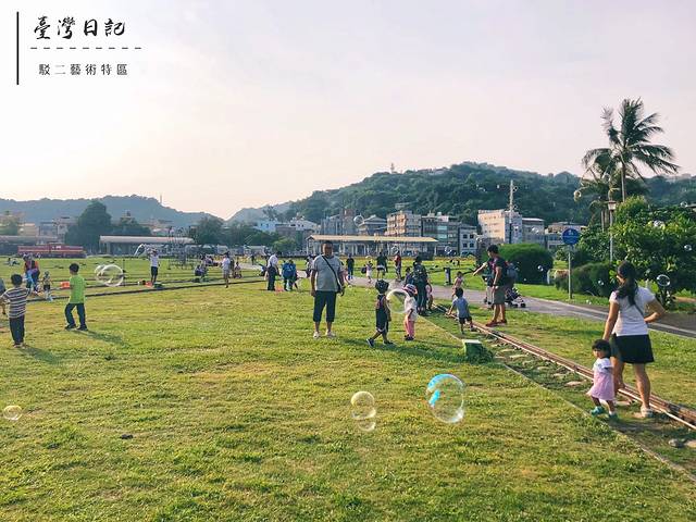 艺术特区旁有一大片草坪,很多孩子在这里玩着泡泡,放着风筝,一片岁月静好的模样。