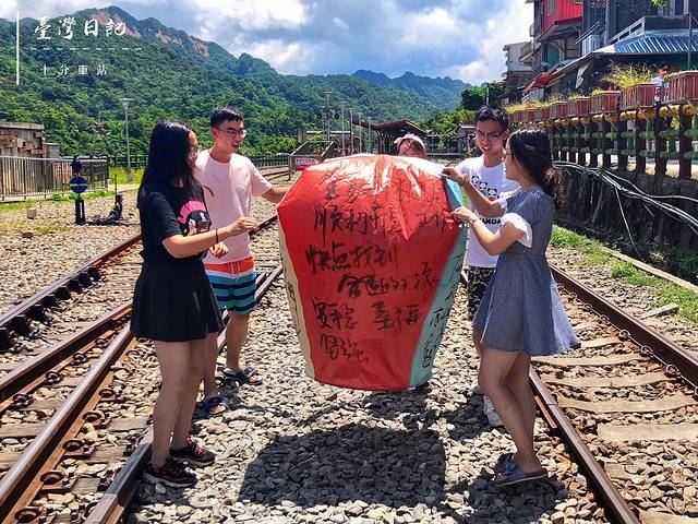 这里相比于前两站要热闹很多,沿着铁路有小吃店、礼品店,也有很多提供放飞天灯服务的店,只要火车没来,大家就在铁轨上写下祝福放飞天灯,火车来的时候一群人往铁路两边跑的样子也很有趣。