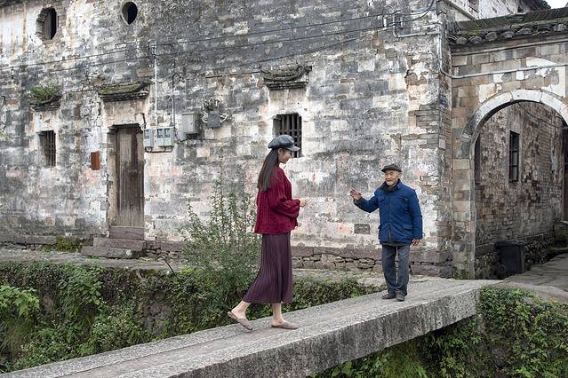 村里的老爷子也非常不一般,妹子在桥上摆拍,他老人家要过桥,招呼打得那叫一个自然又有型。果然地灵人杰。