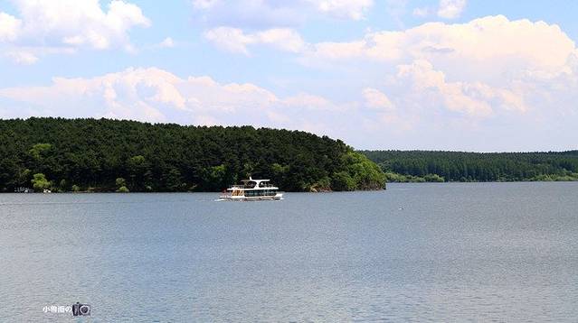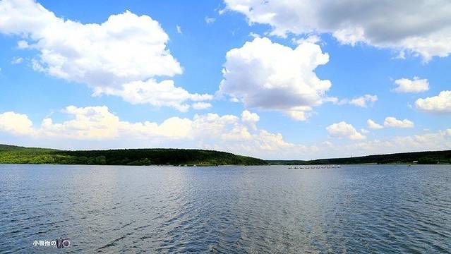 净月潭水库大坝,它好似一条起伏辗转的龙脉,横卧在净月潭边,大坝全长555米,高19米。大坝的右侧是游船码头,在这里可以泛舟、戏水、看山峦的变幻,看山石的峻峭,情趣盎然。