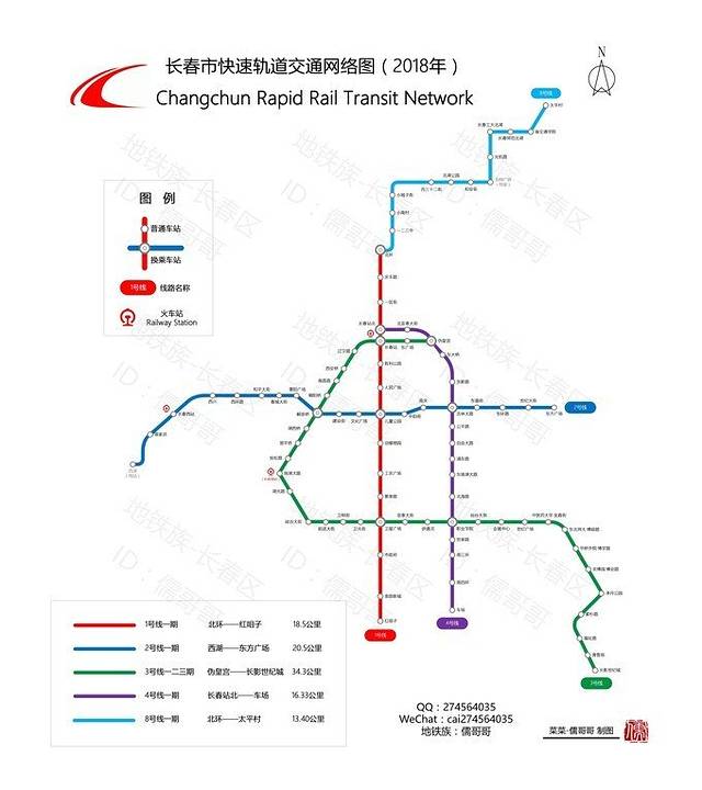 轨道交通:长春轨道交通包括长春地铁、长春 轻轨和长春有轨电车。截至2018年,长春轨道交通运营线路共有5条。2022年前5、6、7、8、9、10也会通车共10条线路,2030年前共会有14条线路,下面的内容我会详细说。