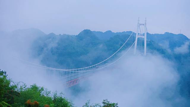 这是世界上横跨峡谷的悬索钢桁桥之最,