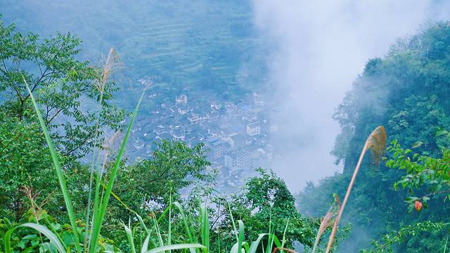 小镇就在悬崖边上,修有悬崖栈道可以玩,