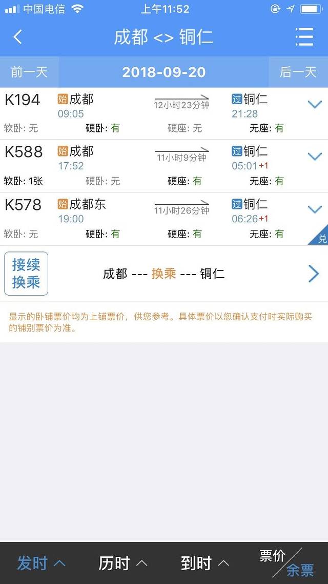 最省心和节约时间到莫过于19:00 成都 出发的K578(硬卧184元/人),