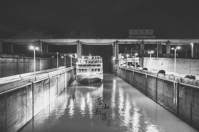 五级船闸是 三峡 大坝为应对上下游高低水位差而设计的轮船通航道,因为直接修建成一级的话水位落差使得闸口压力过大,故而设计成五级闸门,从夜间十二点开始近乎耗费了四个小时的时间才出了最后一节闸道。
