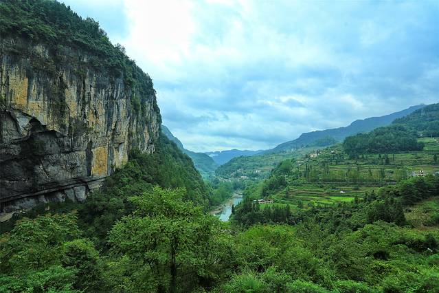 若不是黄金洞景区标志,你很难想象得到眼前的大山下是一座洞洞相连、山水循环的七层洞穴大厦,更想象不到上亿年前这里曾经在海洋的深处。沧海桑田,世事变迁。