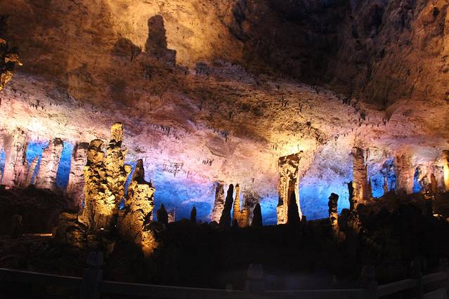 九天洞属喀斯特地貌的特大溶洞,构造复杂,发育于新华夏一极构造三隆起南段,属地层性复二迭系。已经探明可供游览的面积有 250 公顷,号称“ 亚洲 第一大洞”。常年温度 20-22 摄氏底。 夏天可选择带一件外套。