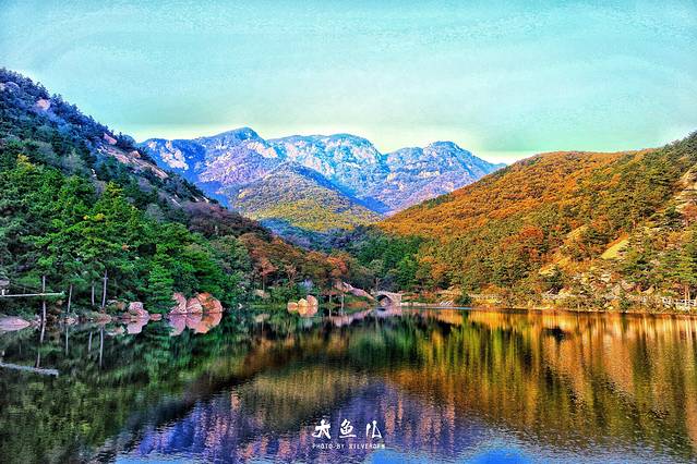 站在 九龙 潭顶,秋风拂面,赏尽这一片金色。