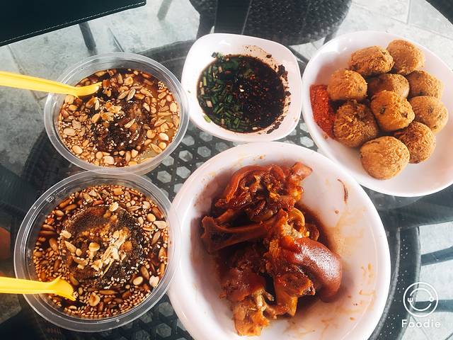 就在门口路边找了一家看起来人多一点的店,吃了名声在外的青岩猪脚,甜甜的有糯米又好像是藕粉的一碗很好吃。
