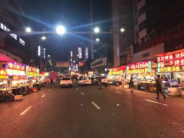 到了之后排队打车到酒店已经十二点多,饥饿的两人去隔壁灯火辉煌的夜宵街买了好吃的烤茄子和并不好吃的炒粉。