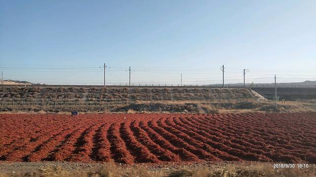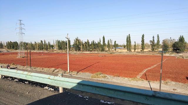 一到安集海镇,车窗外面就是红色海洋,当我们还在想是啥子的时候,看到公路路边卡车掉下来的红色全是辣椒,我的天啊,辣椒我见过,这么多没见过啊,好神奇,好奇宝宝又上身了😁