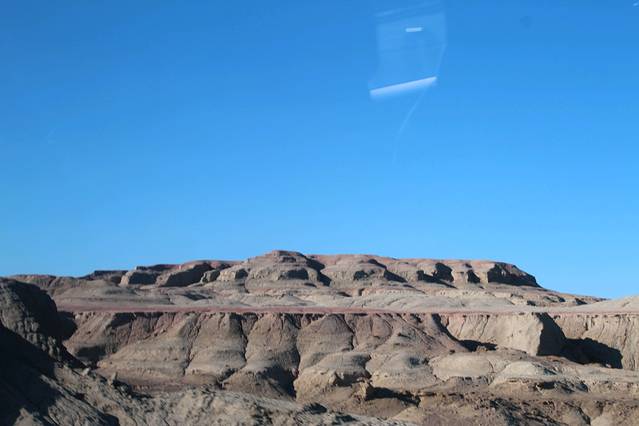 一开出乌鲁木齐,慢慢的越来越荒凉,硬地沙漠,戈壁,野生蹄类保护区。
