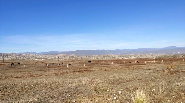 简单的在停车场吃了馕和一些零食干粮,就赶紧出发了,一出富蕴县,戈壁又来了