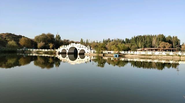 按照指示路线徒步吧,有桥有水,和远处的沙漠形成鲜明的对比。