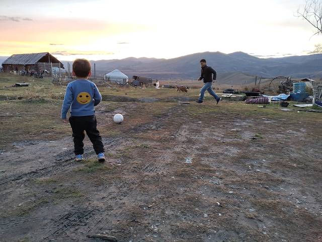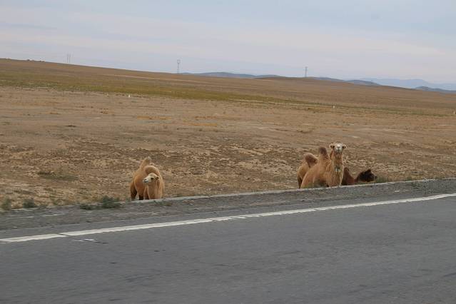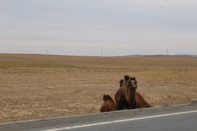 终于看到有两颗树还是草,还有颜色。赶紧要求停车,冲下去放风