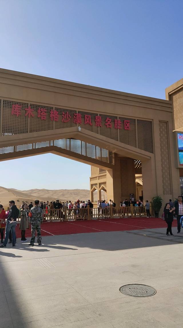 这是出来的时候拍的,进去的时候几乎没人,自助买票便捷又快速,只买了门票,没有买区间车。因为想着区间车能到的地方,沙山要拍张单人照都困难,要是还想拍没有脚印的,估计得走更远。而且爬沙山是超辛苦的😇