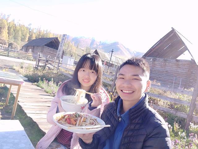 秋天的新疆,天黑也是20点半左右,到达可可托海镇,已经21点,饿的前胸贴后背,入住后放下行李,找吃的去,哪家看的顺眼就哪家吧