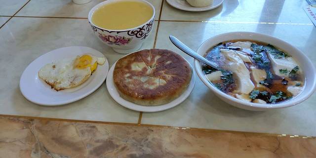 酒店出门往右十米,江苏人在鄯善开早餐的店。