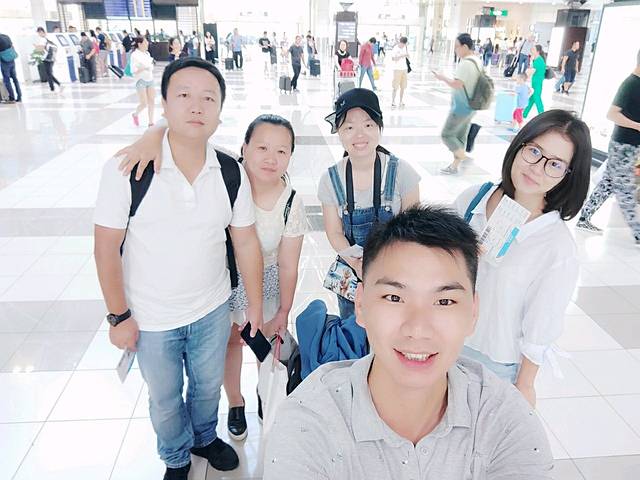 在珠海机场,出发前合照一个,五缺一。