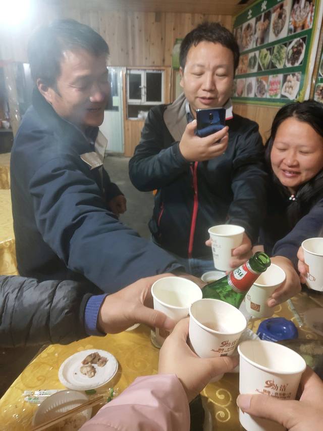 一杯敬同伴,谢谢信任,一切都是缘分。今天刘师傅也辛苦了,这是整个行程最艰难的路段过去了,接下来都是轻松的了。