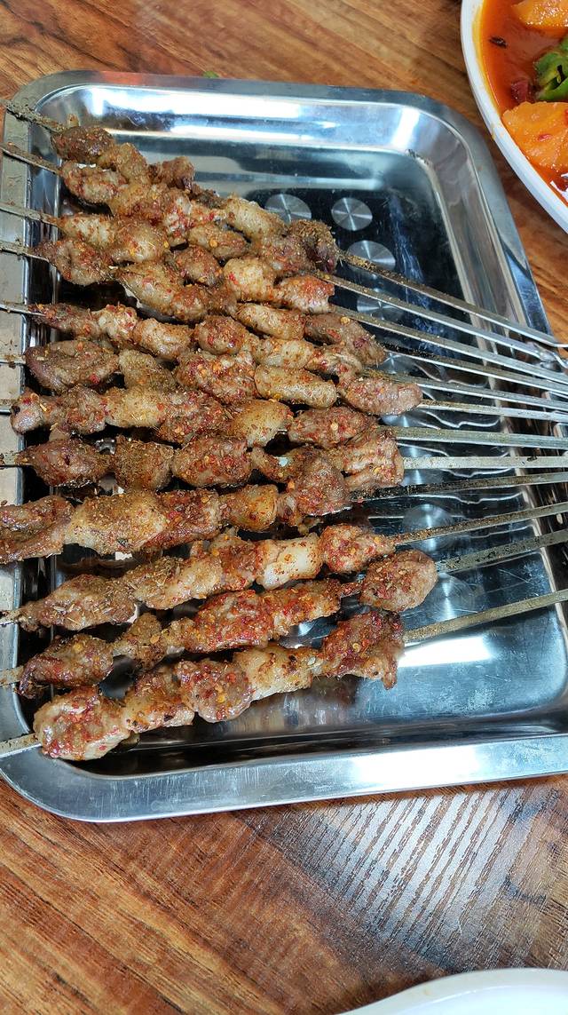 先解解馋,味道当然杠杠的。5块一串。喀纳斯景区8块,五彩滩景区外面6块,国际大巴扎10块。除了国际大巴扎是不好吃的,其他真的很美味