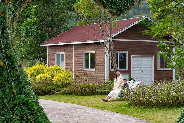 趁办理入住的空隙,在院子里拍照。院子里还有供人休闲日桌椅。