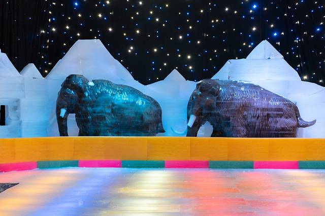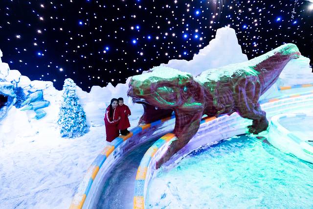 冰雪世界主要分两部分,一边是侏罗纪主题乐园,另一边是冰雪城堡。