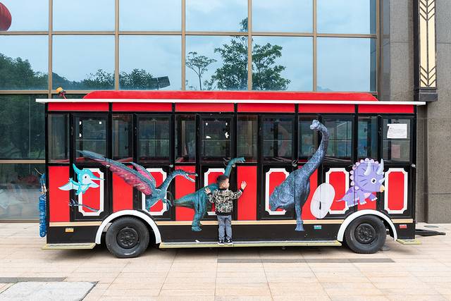 小孩子一路说要看恐龙,于是带他到河源恐龙博物馆看看真正的恐龙。