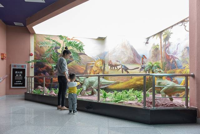 吃罢午饭,便在客天下里面闲逛,小朋友叫嚷着要去看恐龙,“中华恐龙之乡”称号是中国地质学界权威机构对广东河源的官方认可。客天下这边正好也有个以恐龙为主题的侏罗纪室内冰雪世界。