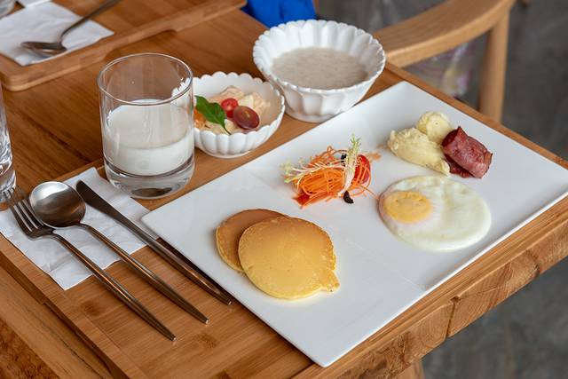 泡完温泉之后,真的睡得特别好,一觉到天亮。早晨起来到餐厅,喝一杯醒神的还魂咖啡,马上加到满电状态。