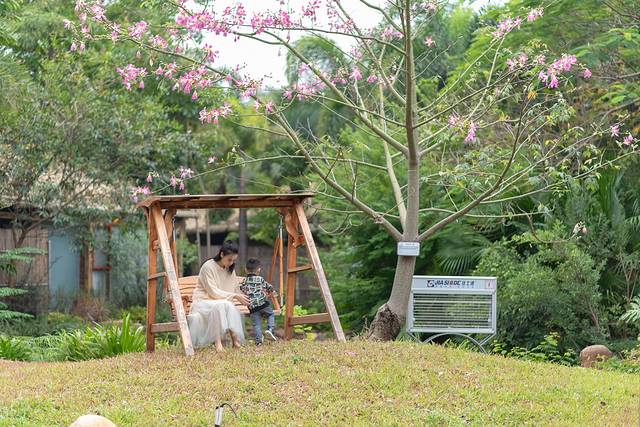 院子里有一棵美丽异木棉,此时正值花期,坐在花树下的木秋千,心情也会随着秋千荡起来。
