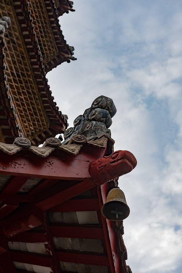 平塔属青砖结构,平座和出檐均用隔层狗牙砖叠垫出挑,出檐较其它塔宽厚。平座设有木栏杆,每层六角均有角柱,柱间饰横架栏额相连,为典型宋代仿木楼阁式砖塔。每层塔檐现改用灰色琉璃瓦,施瓦当滴水,角梁下悬挂铜钟。