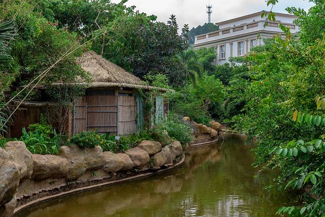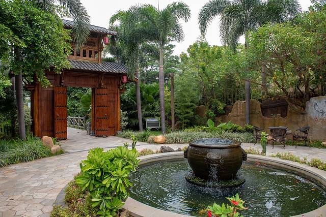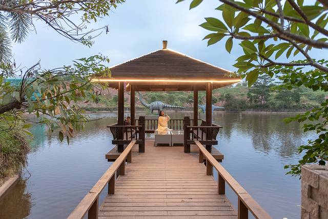 河源的涟岸·禧悦庄在客天下景区的一个绿树成荫的小岛上。小岛通过一座小桥和外面相联。独立私密,自成一体。