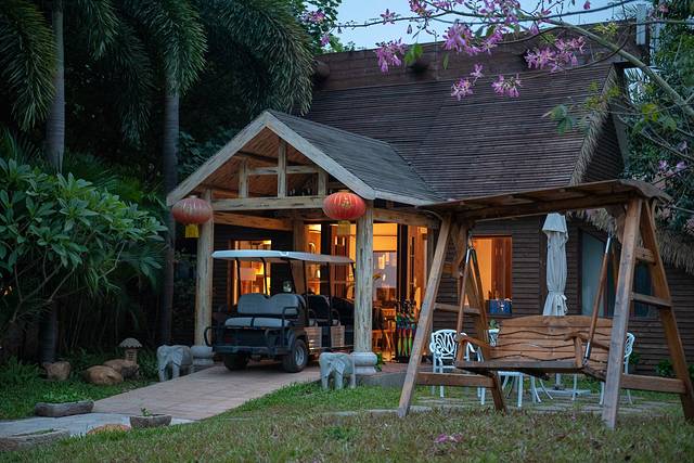 办理好入住手续,服务员帮我们把行李拿到客房,客房是一栋栋的独栋小别墅,一栋一个套间,外观看起来像一间小茅庐。