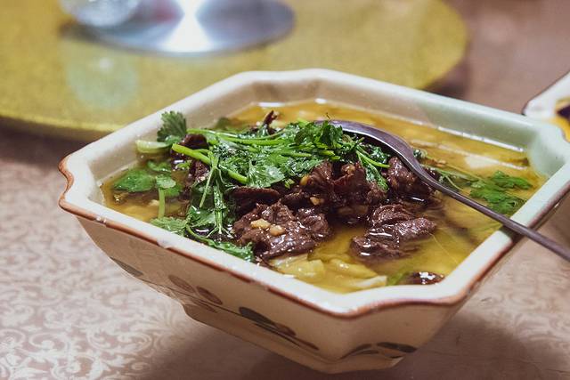 这道酸菜牛肉可以说是功过各半,牛肉处理得很嫩,还加入了薄荷叶,所以清香诱人,但主角之一的酸菜却不是坛腌的,而明显用的是速成酸菜。入口较硬,而且没有酸菜应有的味道。现在这个快速的社会,想吃到传统的味道真是越来越难。