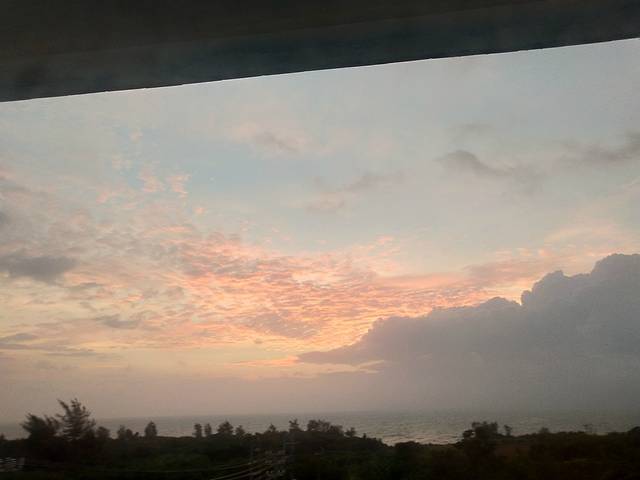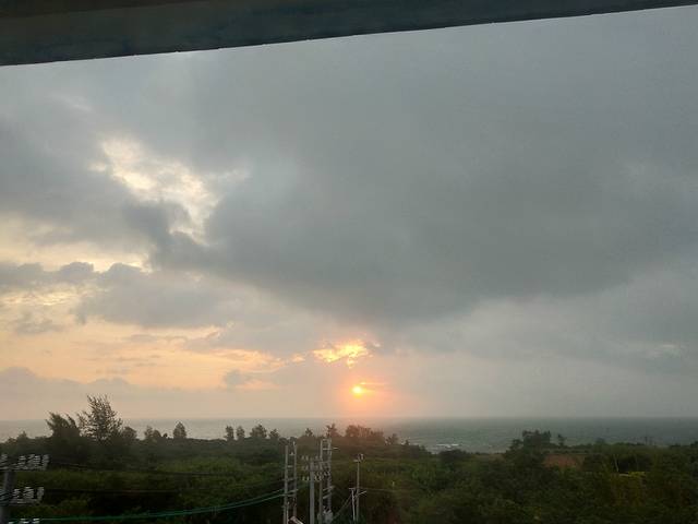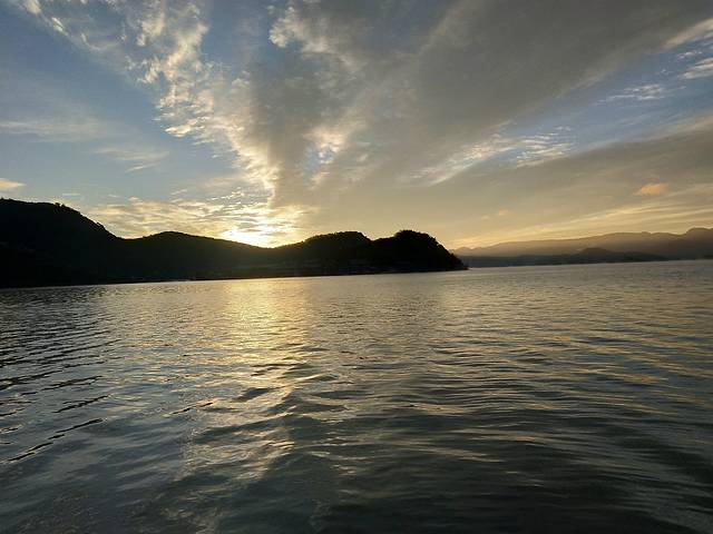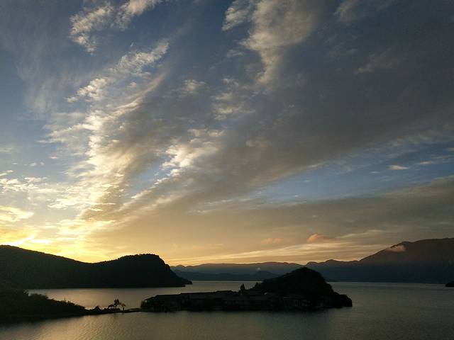 自从旅游开始,每天都是6点20左右起床~今天也不例外啦~睁开朦胧滴双眼~老公拉开窗帘~我们幸运的看到了日出~~哇哦~昨天云太厚都没看到的景色尽收眼底~~好幸运!!而且是躺床上看日出~~
