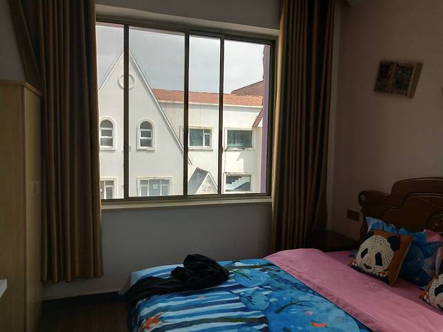 这间屋子~灰常亮~老板说过挺亮的~白天还好~晚上外面灯光照着~你懂得~一开始没睡着都~所以,介意的亲还是和老板说不住这间~~后来和老公换位置,不一会也睡着啦~~