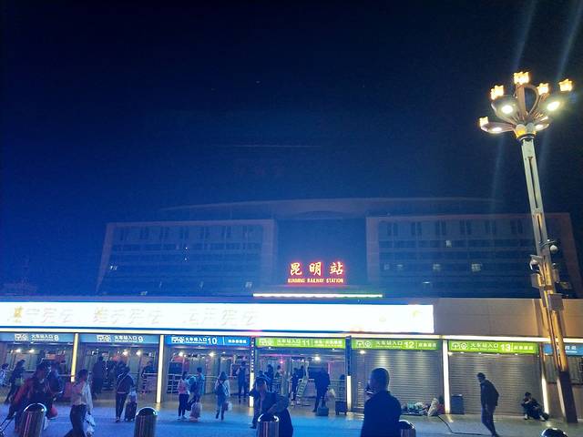 到达昆明南站后乘坐1号线前往昆明站(XX地图显示换乘,不用呦,一趟线)或直接购买动车票前往昆明站(只怪当时不知道,所以就乘坐了地铁),人还真是多,排队安检,过了20分钟,还好买了晚班火车,要是22点的,就赶不上啦~所以有接续22点到丽江的朋友,一定记得买动车~10几分钟就到了,地铁做了1个半小时,终于到昆明站啦~以为出站就是火车站,可是出来后离火车站还有1.5公里,昆明站这边在修路,所以有点绕,但地铁的出口明确画了如何到火车站的指示牌,当然地铁口就有很多三轮车司机在那等你,说多远多远啦,让你坐他们的车,其实,没有多远,只要按照指示走,8分钟左右就到啦~我们按照指示牌走了几分钟,就到啦~()等火车站那块修路修好了,就方便多啦~)