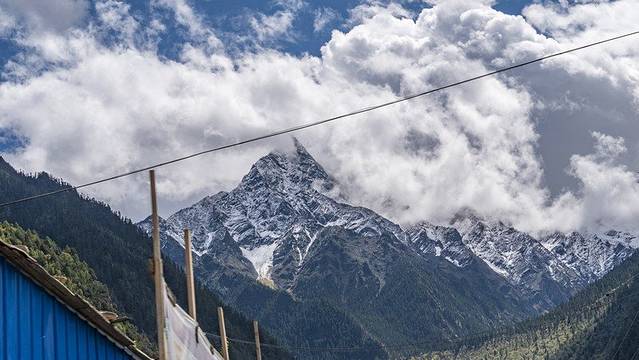 南迦巴瓦峰顶端有一点点被云端遮挡,但是也不失它的美。