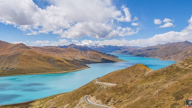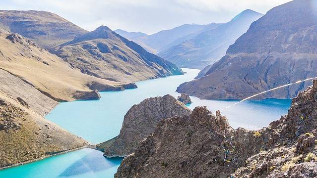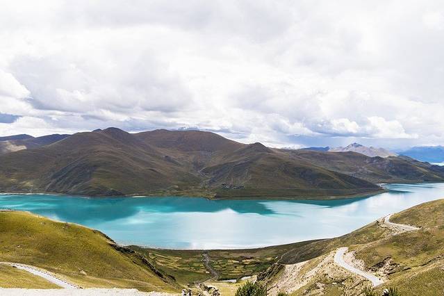 这是我两次去羊湖拍的,角度不同,看到的颜色也不同~ 犹如蓝宝石一般的飘带,就这么静静的躺在那里,内心也跟着平静了下来。