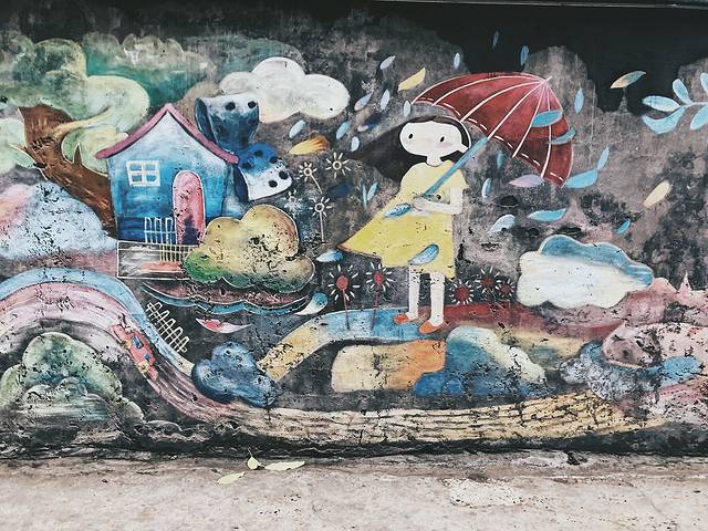 涂鸦一条街在川美的老校区,整个学校就像浓缩的 北京 798,但是现在整个学校到处都是拆拆拆,可玩性已经没有那么大了,校门口的涂鸦一条街,虽然已经很破旧了,但是依旧很有艺术感。