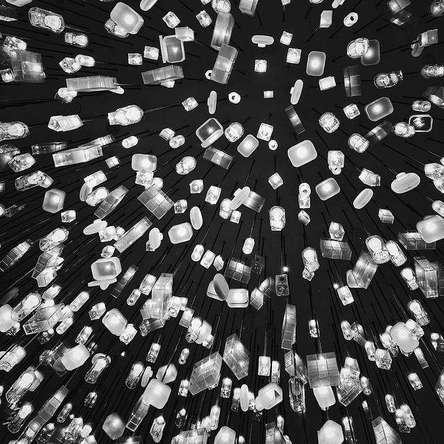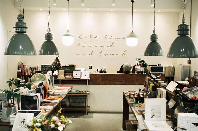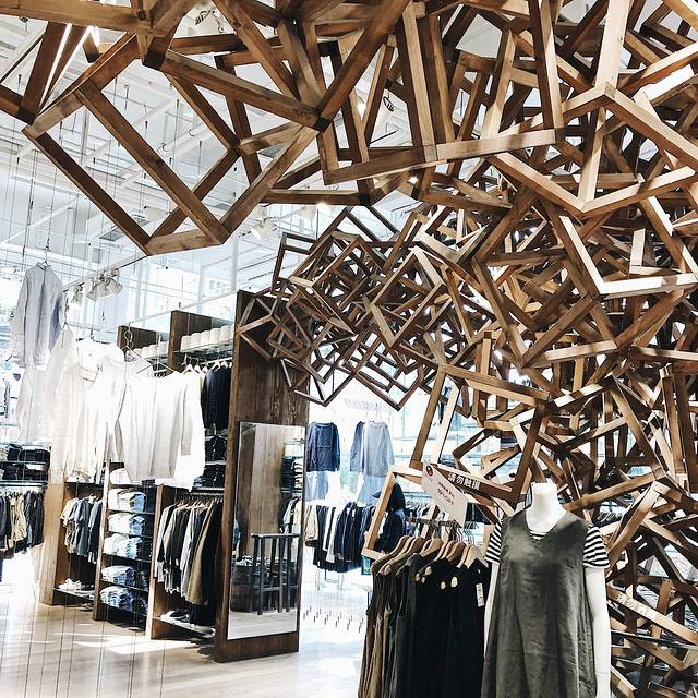 太古里的muji世界旗舰店,这个店将整棵树和古董家具都搬进了店里,另外用1036个muj产品组成大吊灯也颇为震撼,最后地下一楼还有muji的店中店,彩色版本的muji-idee。