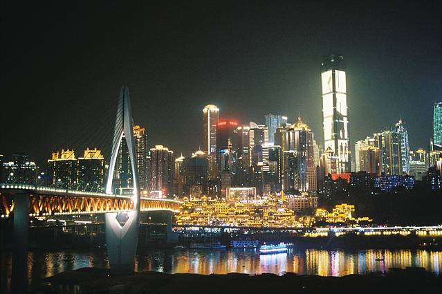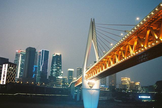 这个点不用多说了,算一个城市的标志景点了吧。我选择一个工作日去看夜景。不出意外人特别特别多。我 从江 边一直逛到洪崖洞,和大多数游客一样在下面的马路拍完全景后,我选择直接上大桥,并走一步步走到江对面。说实话,江对面人好少,而且拍夜景超级漂亮。