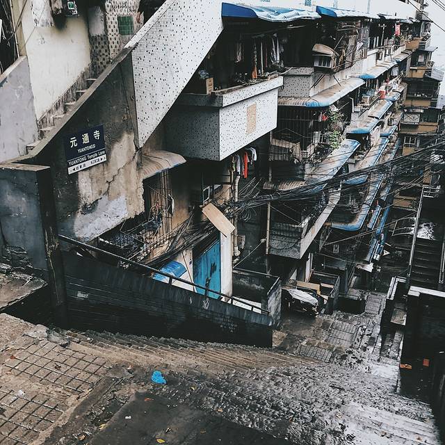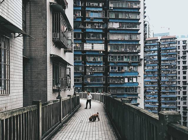 如果坐过长江索道,一定会看到刚好和索道擦肩而过的居民楼,24楼没有电梯,3个出口通三条街的神奇居民楼。居民楼里面主要都是老人居住,楼内部竟然还有小卖部。可以在不打扰到他们正常生活的情况下走走居民区,你会发现一些特别有趣的场景。