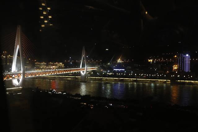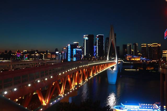 错过了博物馆,我们打的回到青旅(只要12块打的费)洗漱了一遍,美美睡上一觉,晚上开始新的任务。通行的小伙伴下午有些轻微中暑,所以晚上我自己一个人出动,步行走过千厮门大桥,来到洪崖洞的对岸,我要看倒映在水里的你。灯火阑珊处的洪崖洞,是另一种美,置身于大都市的流光溢彩中,他也变得年轻有活力起来,隐隐约约听到对面传来的声音:你会不会突然的出现,在街角的咖啡店,我会带着笑脸,挥手寒暄,和你坐着聊聊天……我喜欢这首歌,就像喜欢现在的美景一样。